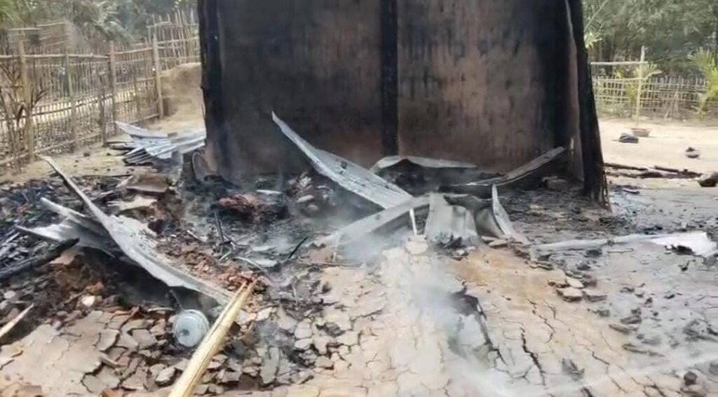 Dharmanagar, Tripura, 6th of March, 2026 : A devastating fire incident created panic in Bires Para, Ward No. 7 of West Haflong under Dharmanagar subdivision on Friday afternoon. The only dwelling house of Samiran Tanti was completely burnt to ashes in the blaze, leaving the family devastated and homeless within moments.According to family sources, the fire caused an estimated loss of around ₹5 lakh. Important documents, furniture, and almost all household belongings kept inside the house were destroyed in the flames. The family is now passing through an extremely helpless situation.
