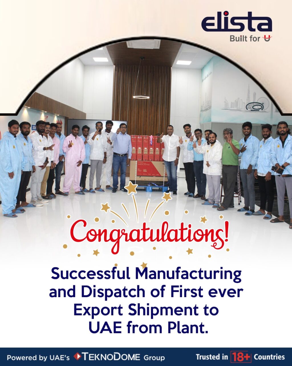 Strategically located near Chennai and Visakhapatnam ports, the Kadapa plant provides Elista with a major logistics edge, cutting shipping times to Dubai to only five days and minimizing costs versus conventional OEM hubs. Fitted with automated assembly lines, robots, and intelligent QA systems, and constructed with green measures like rainwater harvesting, solar inclusion, and ESD-safe areas, the facility embodies Elista’s emphasis on precision, performance, and responsible manufacturing.