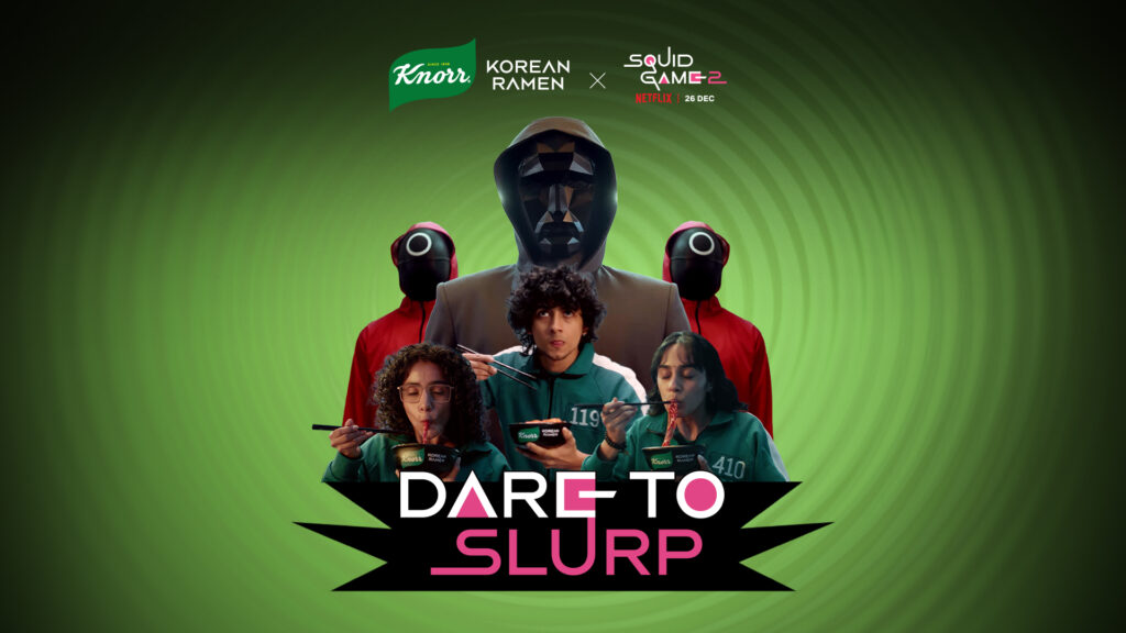Mumbai, Maharashtra, 24th of December, 2024 : Over the past few days, K-fans have been treated to an absolute spectacle. With brands across the board jumping on the hype train, the excitement for the next season of the iconic Squid Game is at an all-time high. Amidst all the K-drama madness, one brand managed to stand out from the crowd—Knorr. Knorr collaborated with Netflix to launch three limited-edition Squid Game-themed Korean Ramen flavors that dared fans to embrace the drama, spice, mess, and taste, all served piping hot. Blending the show’s global fandom with the rich flavors of Korean cuisine, Knorr celebrates the growing influence of K-culture in India. In Korea, slurping ramen loudly is a joyful expression of respect and love for the dish, and Knorr, in collaboration with Netflix, is breaking taboos by urging Indians to embrace this tradition and launching the Dare to Slurp challenge.
