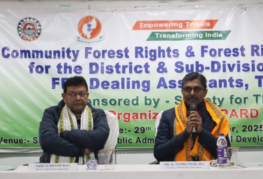 Agartala, Tripura, 31st of December 2025 : A three-day training programme on “Community Forest Rights (CFR) and the Forest Rights Act (FRA), 2006” concluded today at the State Institute of Public Administration & Rural Development (SIPARD). The programme was organized under the Tripura Rural Economic Growth and Service Delivery Project (TRESP) with the objective of strengthening institutional capacity for effective implementation of forest rights.