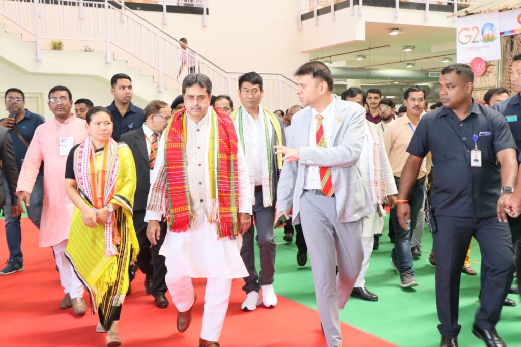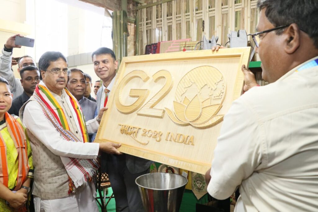 Exhibition of G20 Conference at International Indoor Exhibition Center, Hapania, Agartala on Monday (3rd April, 2023). In the presence of many dignitaries Hon’ble Chief Minister Dr. Manik Saha inaugurated the Exhibition of G20 Conference. Hon’ble Tribal Welfare, Handloom, Handicrafts & Sericulture, Statistics Minister Bikash Debbarma, Hon’ble Industries & Commerce, Jail (Home), OBC Welfare Minister Santana Chakma and other dignitaries were present in the ceremony.