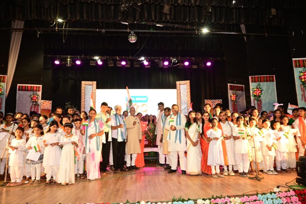 Gomati, Tripura, 8th of November, 2025 : Gomati District Level commemorated 150 years of India’s National Song Vande Mataram programme organized by District administration at Rajarshi Hall, Udaipur under Gomati District on Friday (7th November, 2025). In the presence of many distinguished dignitaries Hon’ble Finance, Planning & Coordination, Information Technology Minister Pranajit Singha Roy inaugurated the event by lighting the lamp.