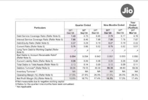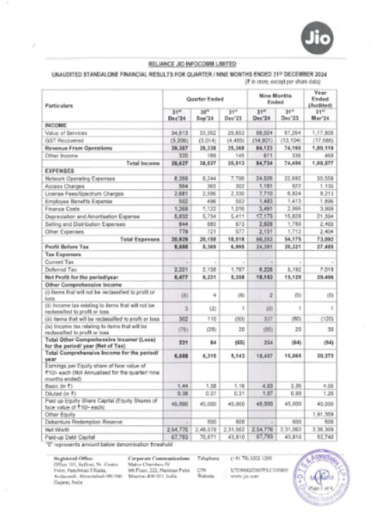 Financial And Operational Performance Of RIL Unaudited Standalone Financial Results Of RJIL For The Quarter And Nine Months Ended 31st December 2024.