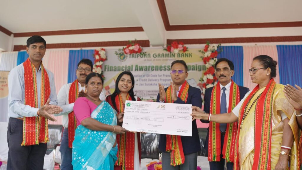 Agartala, Tripura, 2nd of December, 2025 : With the initiative of Tripura Gramin Bank organized a Financial Awareness cum Credit Delivery Campaign at the premises of Mata Kasbeswari Kali Temple on Tuesday (2nd December, 2025).