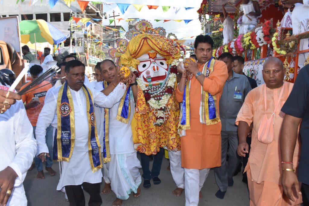 Former Chief Minister Biplab Kumar Deb carrying Lord Jagannath on the occasion of Ratha Yatra at the International Society for Krishna Consciousness (ISKCON) Temple in Agartala on Saturday (9th July, 2022).