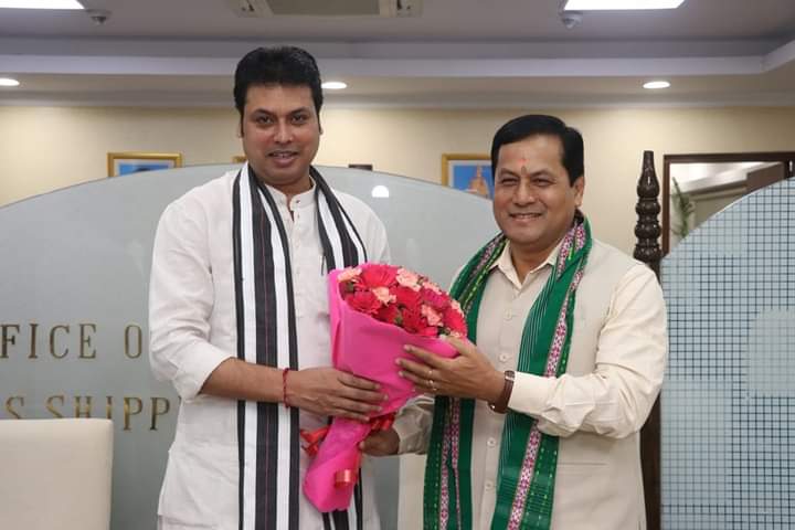 “Met with elder brother & Union Minister Shri Sarbanand Sonwal Ji at New Delhi. His calm & guiding nature always attracts me. Sonwal Ji has special attention for the development of Tripura.