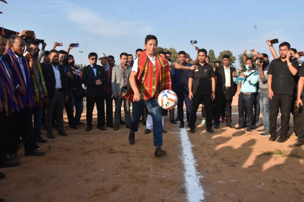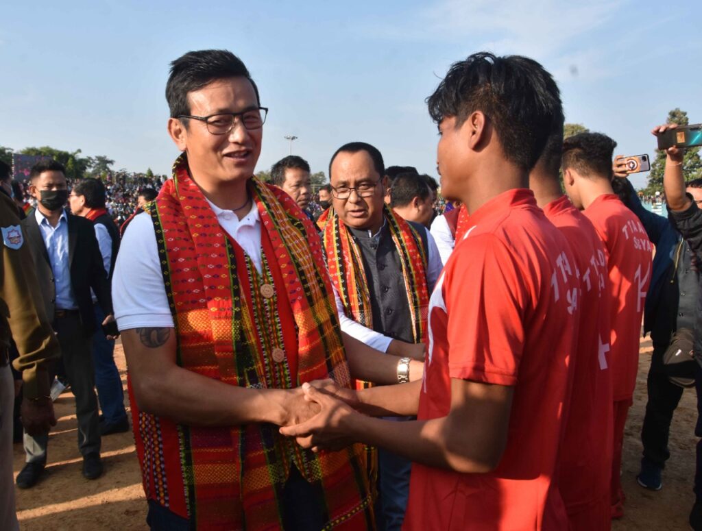 Former Indian Football Captain Bhaichung Bhutia has inaugurated Tipra Football League (TFL) Final Match in presence of Prodyut Manikya Kishore Deb Barma, Hon’ble CEM of Tripura Tribal Areas Autonomous District Council (TTAADC) Purna Chandra Jamatia on today (15th December, 2021) at Khumulwng Stadium organized by Sports and Youth Affairs Tripura Tribal Areas Autonomous District Council (TTAADC).