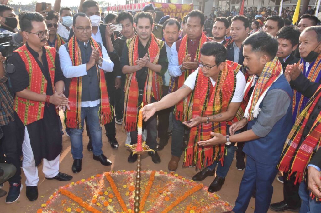 Former Indian Football Captain Bhaichung Bhutia has inaugurated Tipra Football League (TFL) Final Match in presence of Prodyut Manikya Kishore Deb Barma, Hon’ble CEM of Tripura Tribal Areas Autonomous District Council (TTAADC) Purna Chandra Jamatia on today (15th December, 2021) at Khumulwng Stadium organized by Sports and Youth Affairs Tripura Tribal Areas Autonomous District Council (TTAADC).