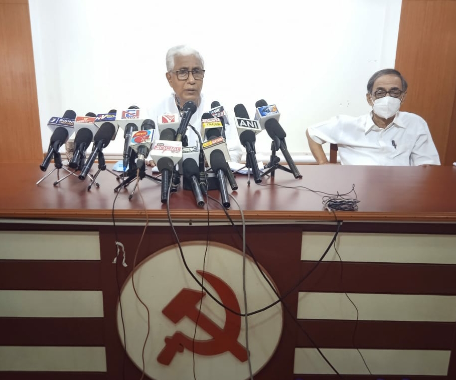 Former State Chief Minister and Present Opposition Leader Manik Sarkar address a press conference at CPIM State Headquarters in Agartala on Today (27th June 2021). Opposition leader Manik Sarkar have stated that the law and order situation in the state is deteriorating.