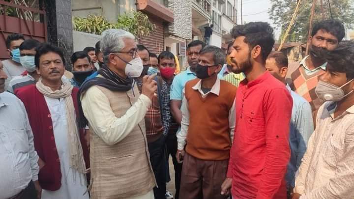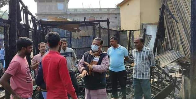 On Monday night, Shops were gutted in a devastating fire in the market adjacent to Barjala Mahan Club. Former State Chief Minister and present opposition leader Manik Sarkar and other CPIM leaders on Tuesday (1st February, 2022) visited Barjala fire incident areas and talked to the affected shopkeepers.
