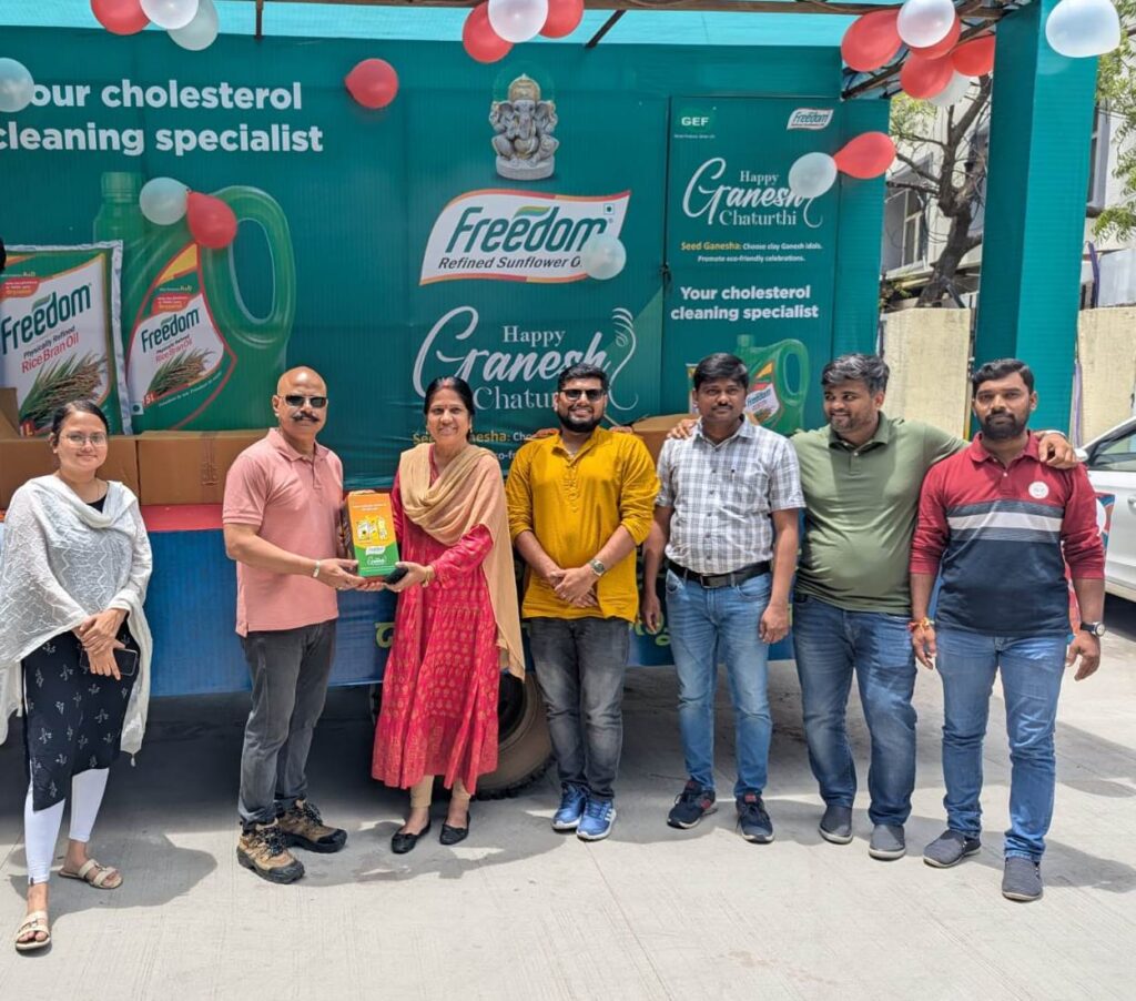 Hyderabad, Telangana, 22nd of August, 2025 : Gemini Edibles and Fats India Ltd (GEF India), the marketers and refiners of Freedom Healthy Cooking Oils, as a part of their efforts to promote sustainable and eco-friendly practices, will distribute 10,000 Eco-friendly Seed Ganesha Boxes. People are getting conscious about the vicissitudes of climate change and rapidly adopting sustainable religious celebrations by worshipping eco-friendly Ganesha, as the immersion of these murti’s have no debilitating effect on the water bodies. To encourage this Freedom Healthy Cooking Oils will distribute 5,000 Eco-friendly seed Ganesha boxes in Hyderabad & 5,000 Eco-friendly seed Ganesha boxes in Bangalore. Mr. Chetan Pimpalkhute, DGM Marketing, Freedom Healthy Cooking Oils along with the team flagged off vehicles to distribute the Eco-friendly seed Ganesha to the apartment complexes like Ridge Towers, My Home Jewel, One City, Sai Mithra Towers, Krishnakunz Gardiniya, Malaysian Townships Rain Tree Park, Swanlake Apartment, Rainbow Vista, Janapriya Metropolis Apartments, Satellite Apartment, Vertex Prime, Rainbow Vistas Rock Garden-1&2 etc, in the city.