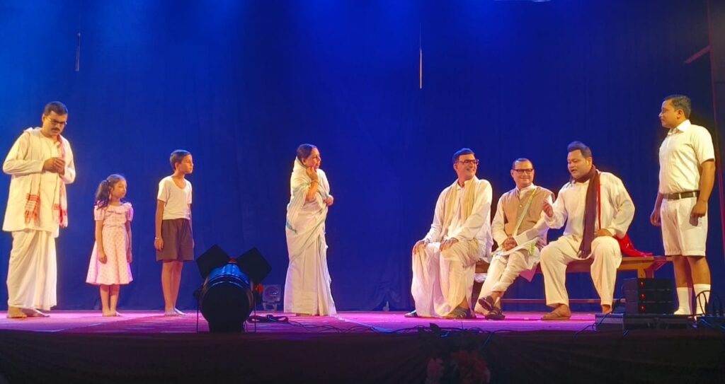 The performance on the night of December 6th was held in memory of Zubeen Garg. Veteran theatre figure Makbul Haque lit the traditional lamp in front of the beloved artist’s portrait. Haque, a Patacharkuchi resident known for his work in professional and amateur theatre groups, directing plays, and acting in films over several years, opened the theatrical event on the second day. The theatrical night included two productions by notable groups: ‘Choku’ presented by Srishti Kala-Krishti Kendra, of Guwahati, and ‘A Beautiful Melody’ performed by Natatirtha, also based in Guwahati. Before the theatrical performances began, the notable Jiban Silpi Adya Sarma Memorial Painting Competition occurred in the afternoon, where Karismita Kalita was awarded the Purnakanta Das Memorial Award for first place, Aradhya Dutta received the Kamalakanta Das Memorial Award for second place, and Kristina Baishya was conferred with the Bimal Chandra Hazarika Memorial Award for third place.