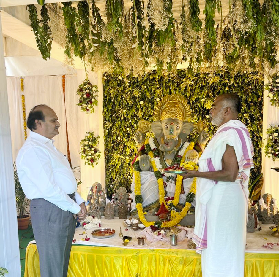 Hyderabad, Telangana, 7th of September, 2025 : An 8-ft tall Ganesh idol was installed at Apollo Hospitals, Jubilee Hills and worshipped with great devotion and fervour. Annadhanam was organised throughout the 11 days, spreading joy and togetherness. on Saturday (6th September), the idol was taken in a grand procession and immersed, with staff and devotees participating in large numbers.