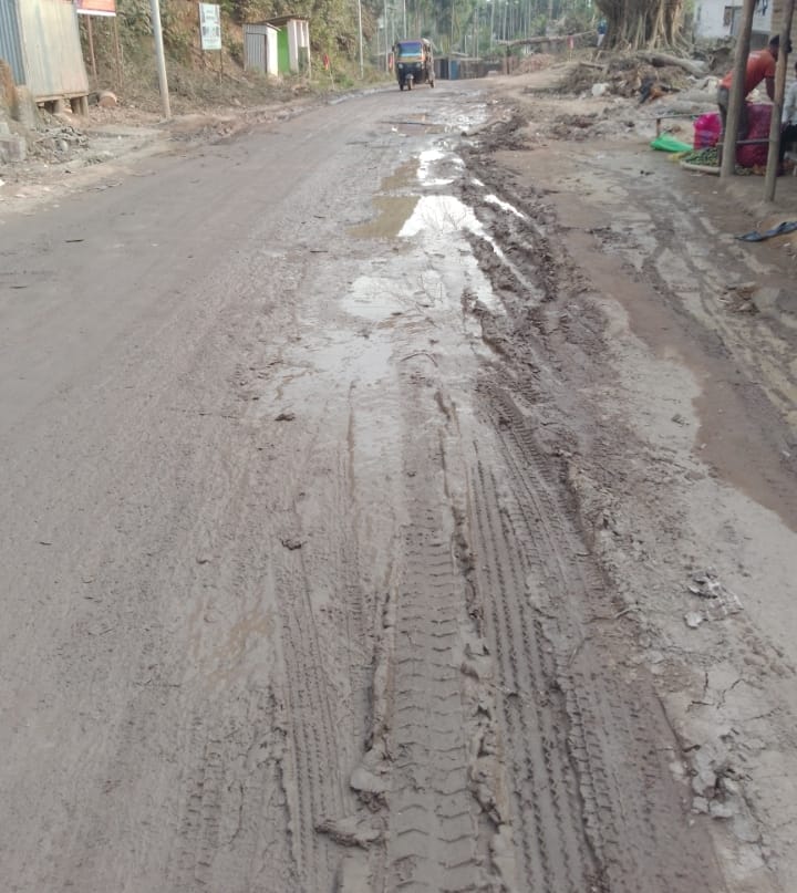 In this dry season about 100 metre distance of the road is full of mud. For the constant movement of vehicles it has turned more risky for the vehicle drivers and passengers. When pedestrians cross the portion they hesitate to walk on this unhygienic road. The road has uncountable holes and potholes where waste water is always standing creating heavy risk for vehicle accident. Local villagers have demanded immediate solution for this road woes. The concerned authorities must investigate the deteriorated situation and take appropriate step to remove this bigger public suffering.