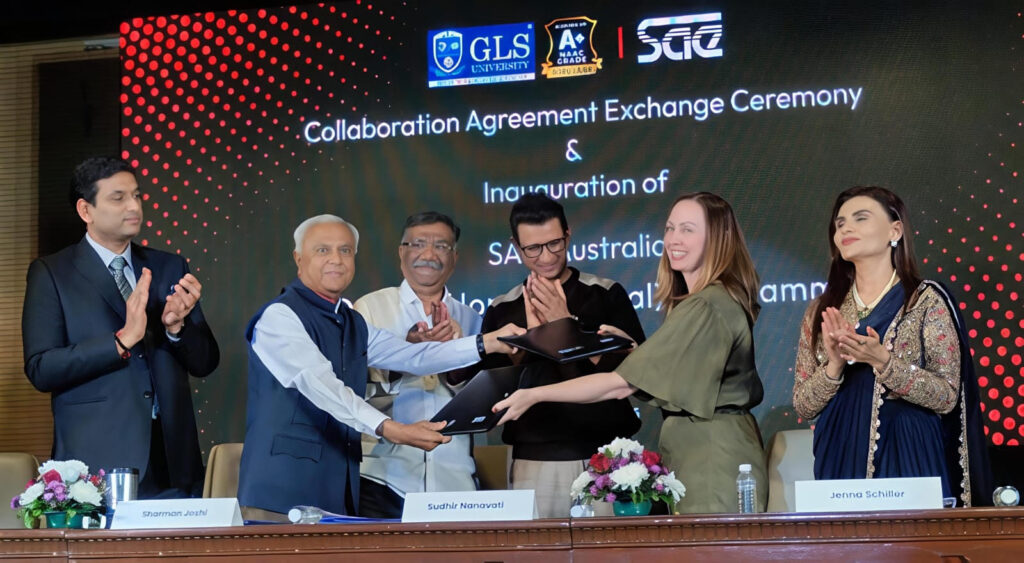 Mumbai, Maharashtra, 9th of December, 2025 : Marking a historic milestone in India’s creative media education landscape, GLS University has partnered with Australia’s prestigious SAE Institute to launch the Global B.Design (Honours) program. Focused on Animation, VFX and Game Development, this four-year degree is the first of its kind in the country to provide Indian students with globally benchmarked qualifications and international career pathways.