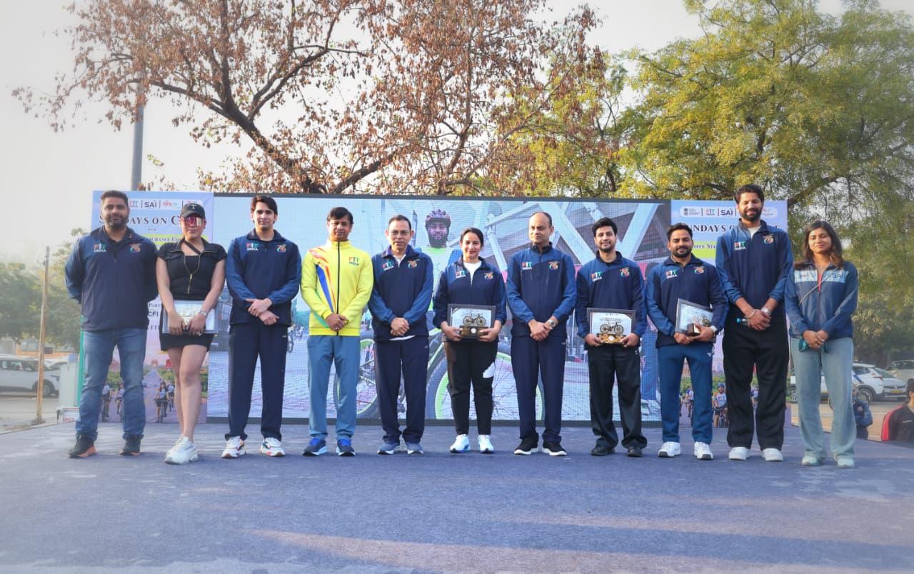 Fit India Sundays on Cycle is organised by the Ministry of Youth Affairs and Sports (MYAS) in collaboration with the Cycling Federation of India (CFI), Yogasana Bharat, Raahgiri Foundation, MY Bikes, Ropeskipping team and MY Bharat. The cycling drive is conducted simultaneously across all States and Union Territories, including SAI Regional Centres, National Centres of Excellence (NCOEs), SAI Training Centres (STCs), Khelo India State Centres of Excellence (KISCEs) and Khelo India Centres (KICs).