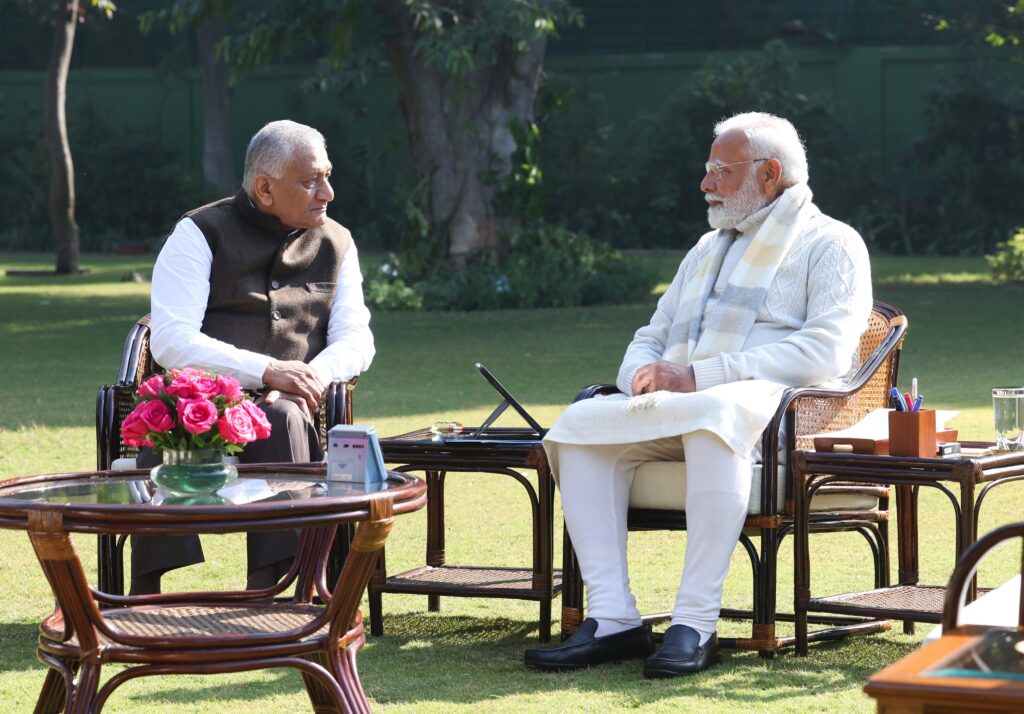 The Prime Minister’s Office handle on X stated: “Governor of Mizoram, @Gen_VKSingh, met PM @narendramodi. @MizoramGovernor”