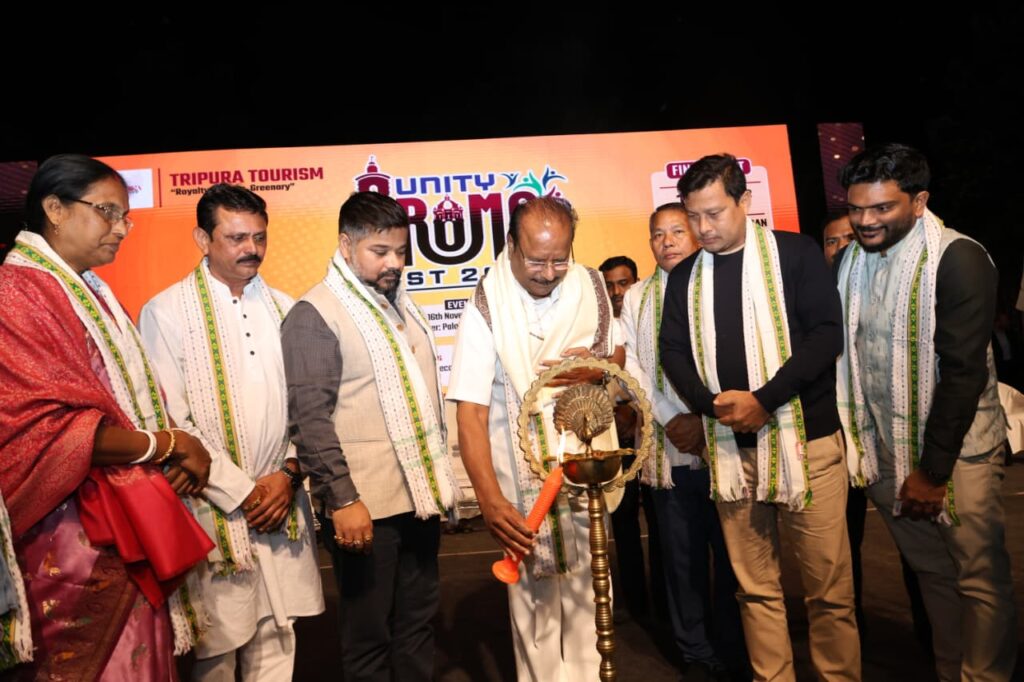 Belonia, Tripura, 15th of November, 2025 : With the initiative of Tourism Department Government of Tripura organized Unity Promo Fest – 2025 at Iswar Chandra Vidyasagar College Ground, Belonia on Saturday (15th November, 2025). In the In the presence of many distinguished dignitaries Hon’ble Governor of Tripura Indrasena Reddy Nallu inaugurated the Unity Promo Fest – 2025 by lighting the lamp.