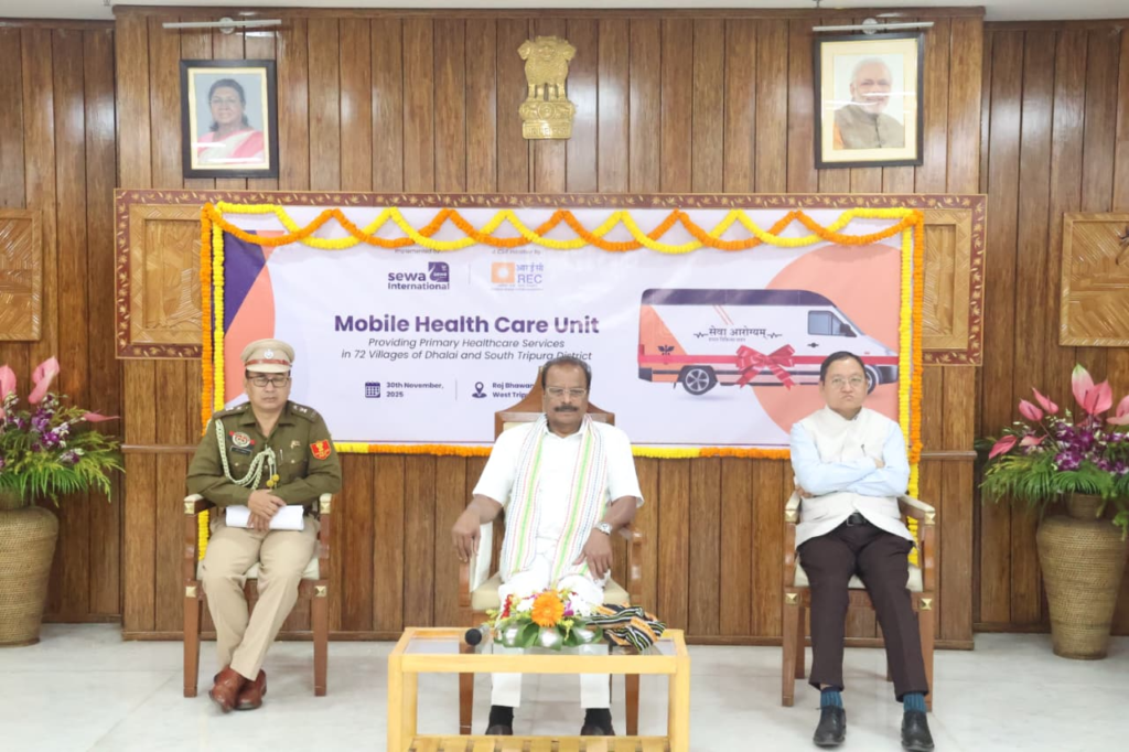 Agartala, Tripura, 30th of November, 2025 : Hon’ble Governor of Tripura Indrasena Reddy Nallu inaugurated and flagged off the Mobile Health Care Unit Project of Sewa International and REC Foundation at Raj Bhavan, Agartala, Tripura on Sunday (30th November, 2025). This initiative has been taken to deliver healthcare services to every household in remote and indigenous areas.