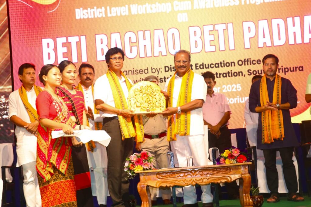 Agartala,Tripura, 4th of September, 2025 : With the initiative of District Education Office South Tripura organized South District Level Workshop Cum Awareness on Beti Bachao Beti Padhao in collaboration with District Administration South Tripura at Sachin Dev Varman Auditorium Belonia on Wednesday (3rd September, 2025). In the presence of many distinguished dignitaries, Hon’ble Governor of Tripura Indrasena Reddy Nallu inaugurated the events.