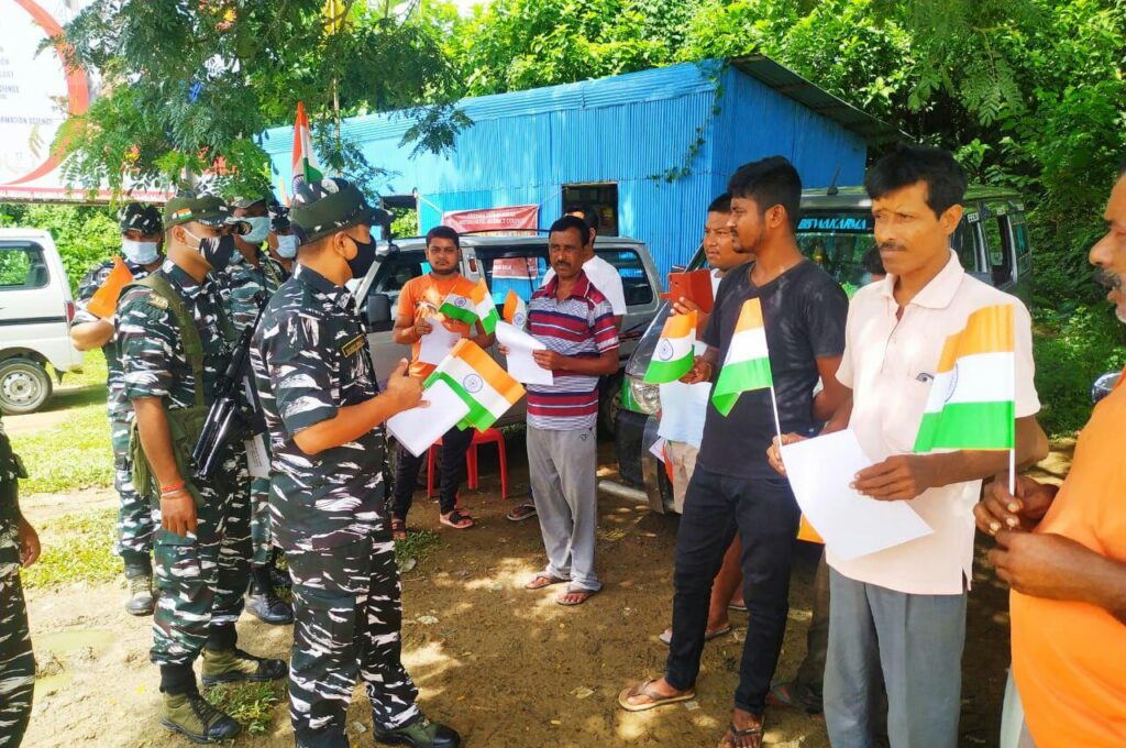 In eve of Independence Day 2022 mega Tiranga Awareness Campaign has been organized in different areas of the state of Tripura. With the​ initiative of Mukesh Tyagi, the​ commandant of 124 BN CRPF ( A/124 , B/124 , C/124 , D/124 , F/124 , G/124 ) carried out HAR GHAR TIRANGA awareness campaign under the 75 years of Independence Day Celebration AZADI KA AMRIT​ MAHOTSAV, programme in the area of ​​Bodhjungnagar, A.D. Nagar, Gandhigram, Lembuchera, (Agartala), Taidu, Ampi (Gomati), SC para (Khowai) and Baghchera, Chailengta at Dhalai District respectively.​ Aiming to generate nationalism stronger among the common people of Tripura the battalion soldiers have taken this inspiring awareness initiative to give message to countrymen over our country’s sovereignty. Sources said that a large number of common people have accompanied the CRPF with this generous programme. In the procession local people have been encouraged to take active part in the HAR GHAR TIRANGA CAMPAIGN and also they have distributed the Flags along with the CRPF to the local public in different locations of the state. The public have been found enthusiastic in Tiranga Awareness Campaign and they have thanked the battalion soldiers for creating patriotic awareness amidst common people.