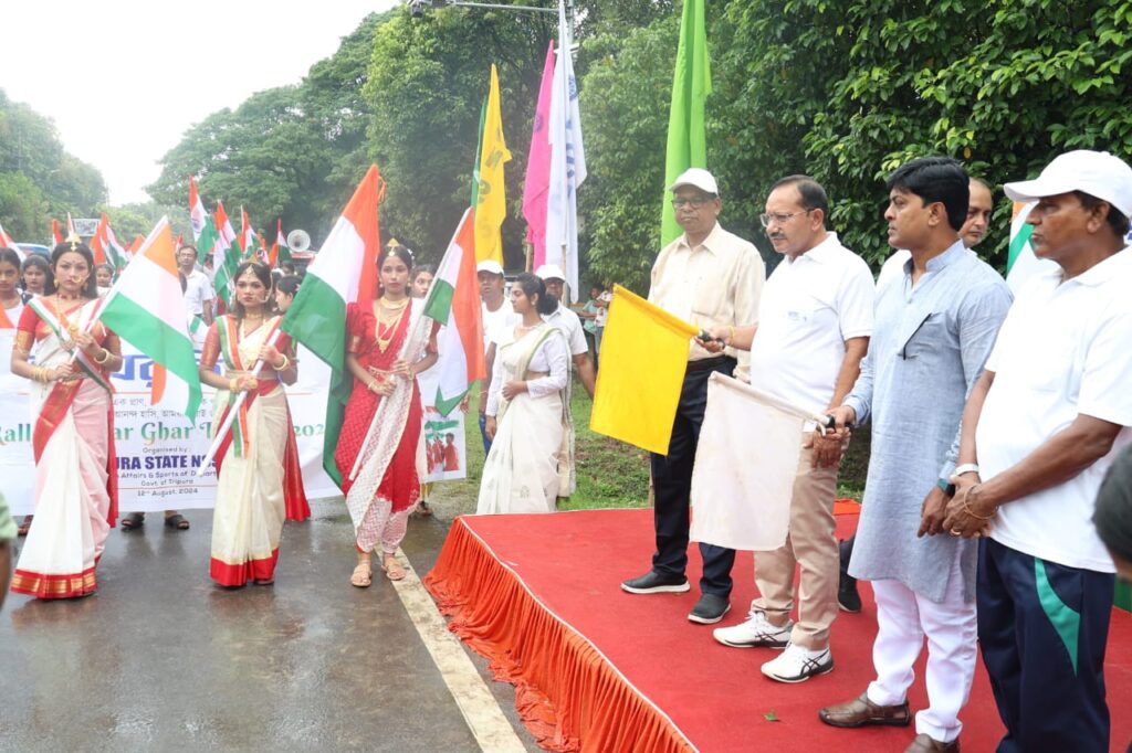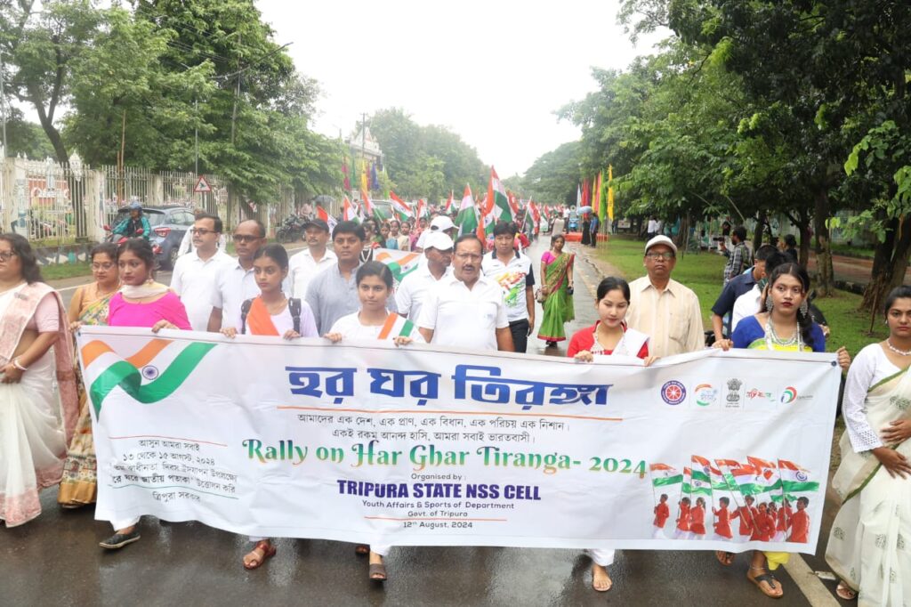 Addressing the Har Ghar Tiranga Campaign-2024 rally Secretary of Youth Affairs & Sports and ICA Department Dr. Pradip Kumar Chakraborty said, the Har Ghar Tiranga Campaign programme has started in the State from August 9 to pay respect to the freedom fighters and show respect to the National Flag. Will continue till August 15. This type of event is being organized all over the country. He also added that in the Har Ghar Tiranga Campaign programme, Tiranga Yatra, Tiranga Rally, Tiranga Runs and Marathons, Tiranga Concerts, Tiranga Canvas, Tiranga Tribute, Tiranga Fair and Tiranga are being organized in the State. He sought the cooperation of the people of all parts of the state for the successful implementation of such programs.