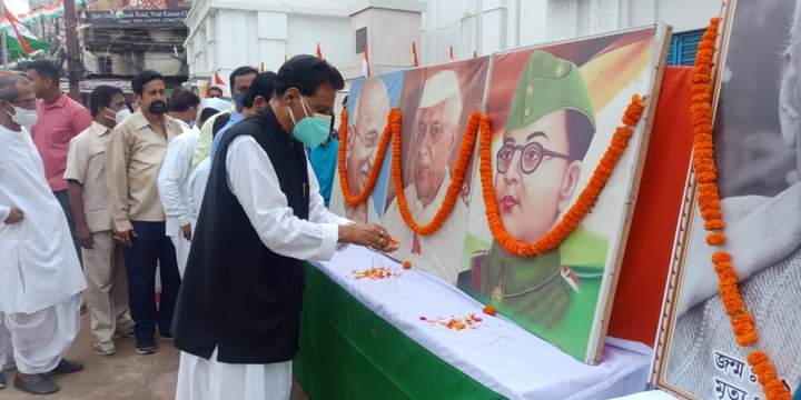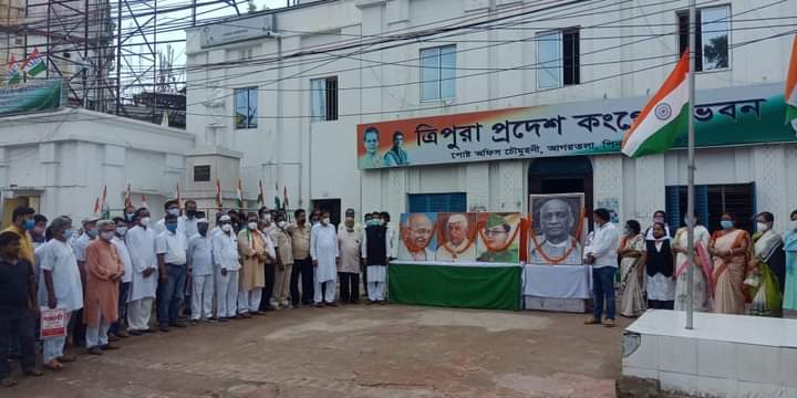 Hoisted National Flag on the occasion of 75th Independence Day at Agartala Congress Bhavan, Post office Chowmuhani. Tripura Congress President Pijush Kanti Biswas, Gopal Chandra Roy and other congress workers were present.