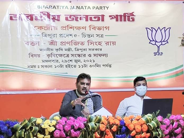Hon’ble Agriculture,Transport & Tourism Minister Pranajit Singha Roy participated in the Training Camp of the Bharatiya Janata Party at State Party Office in Krishna Nagar, Agartala on Today 29th June, 2021. Pranajit Singha Roy discusses Reforms and Success in Agriculture.