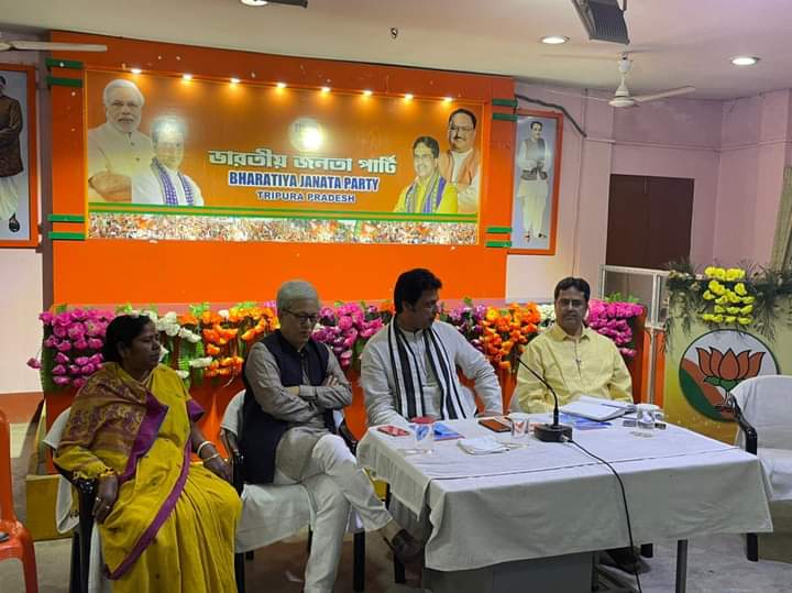 Hon’ble Chief Minister Biplab Kumar Deb attended the organizational meeting at BJP State Party Office, Krishnanagar, Agartala on Sunday (27th February, 2022). Hon’ble Deputy CM Jishnu Dev Varma, Hon’ble MP and Union Social Justice and Empowerment Minister Pratima Bhoumik, BJP State President & Tripura Cricket Association President Dr. Manik Saha and other senior leaders were present at the meeting.