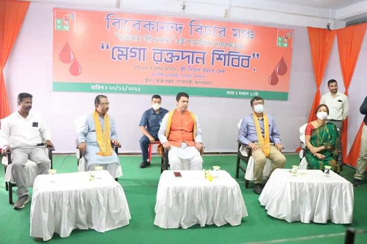 Hon’ble Chief Minister Biplab Kumar Deb on today (20th November, 2021) attended voluntary blood donation camp organized by Vivekanand Vichar Manch.