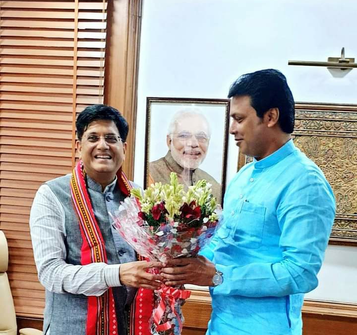 Hon’ble Chief Minister Biplab Kumar Deb tweeted “Always a pleasure to meet Hon’ble Minister of Commerce and Industry & Minister of Consumer Affairs, Food and Public Distribution & Textiles Shri Piyush Goyal ji