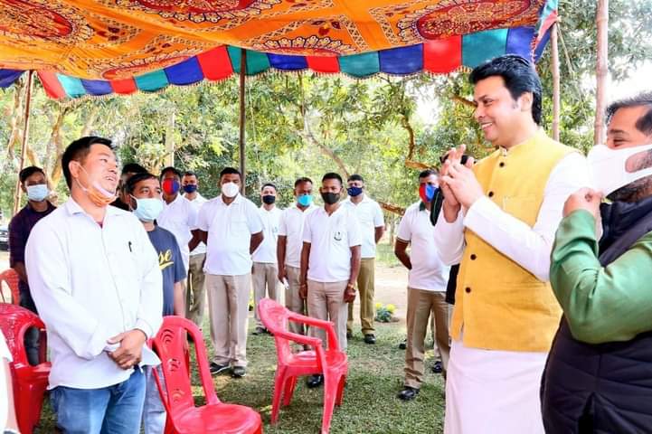 Hon’ble Chief Minister Biplab Kumar Deb visited Tripura State Rifles Headquarter at Jirania on Tuesday (8th February, 2022) along with Hon’ble Information & Cultural Affairs, Sports, PWD (DWS) minister Sushanta Chowdhury. Hon’ble CM Biplab Kumar Deb interacted with personnel of Tripura State Rifles.