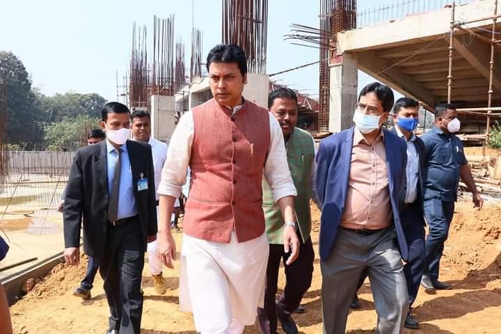 Hon’ble Chief Minister Biplab Kumar Deb visited under construction International Cricket Stadium at Narsingarh, Agartala on Tuesday (15th February, 2022).