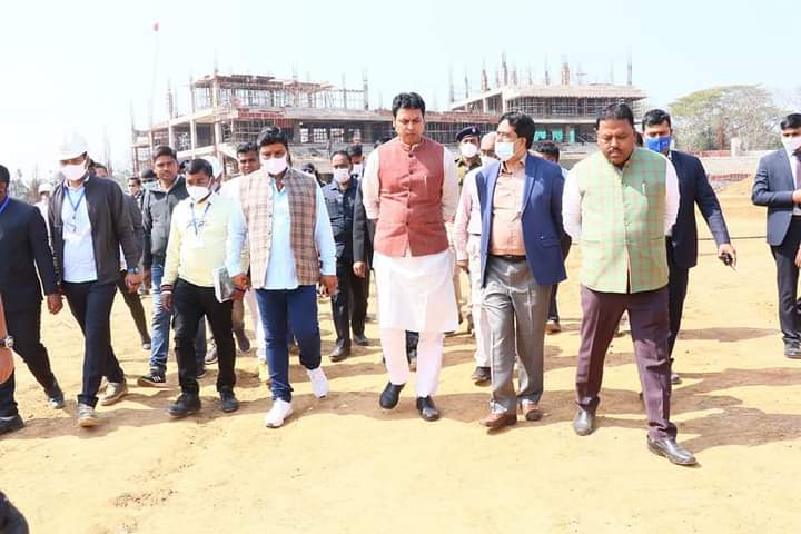 Hon’ble Chief Minister Biplab Kumar Deb visited under construction International Cricket Stadium at Narsingarh, Agartala on Tuesday (15th February, 2022).