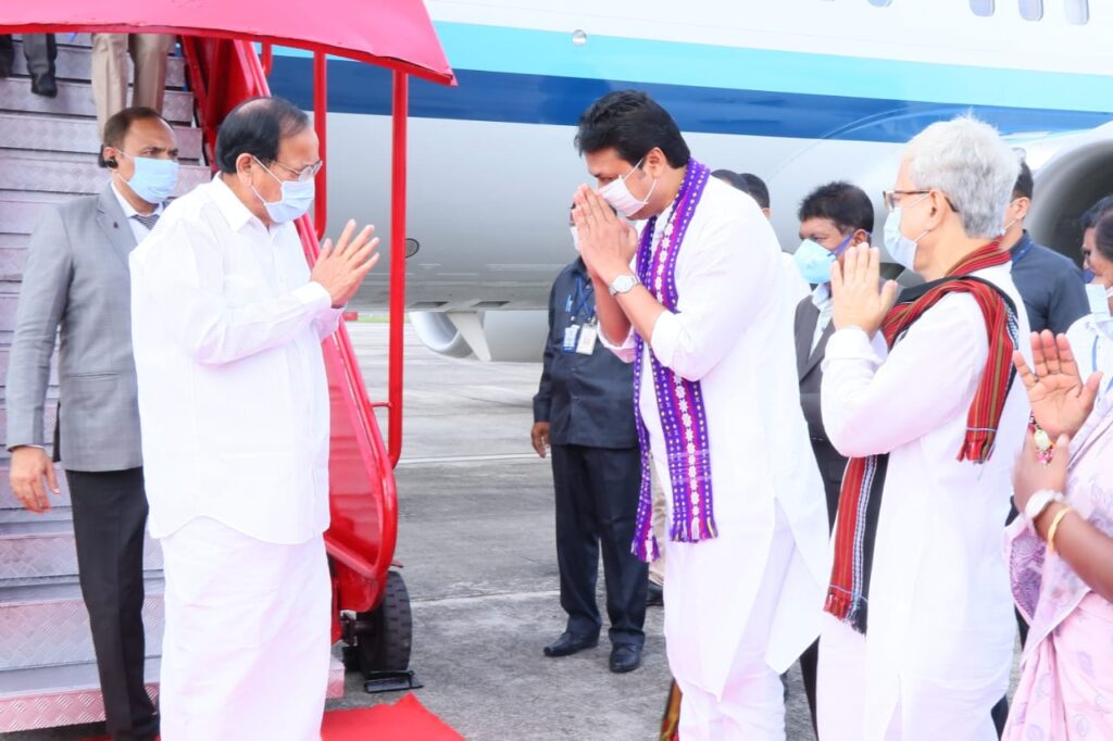 Hon’ble Chief Minister Biplab Kumar Deb Welcomed and Received Hon’ble Vice President of India Muppavarapu Venkaiah Naidu at Maharaja Bir Bikram (MBB) Airport, Agartala on today (6th October, 2021). Hon’ble Deputy Chief Minister Jishnu Dev Varma, Hon’ble MP and Union Social Justice and Empowerment Minister Pratima Bhoumik welcoming the Hon’ble Vice President of India M. Venkaiah Naidu at MBB Airport.