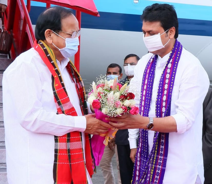 Hon’ble Chief Minister Biplab Kumar Deb Welcomed and Received Hon’ble Vice President of India Muppavarapu Venkaiah Naidu at Maharaja Bir Bikram (MBB) Airport, Agartala on today (6th October, 2021). Hon’ble Deputy Chief Minister Jishnu Dev Varma, Hon’ble MP and Union Social Justice and Empowerment Minister Pratima Bhoumik welcoming the Hon’ble Vice President of India M. Venkaiah Naidu at MBB Airport.