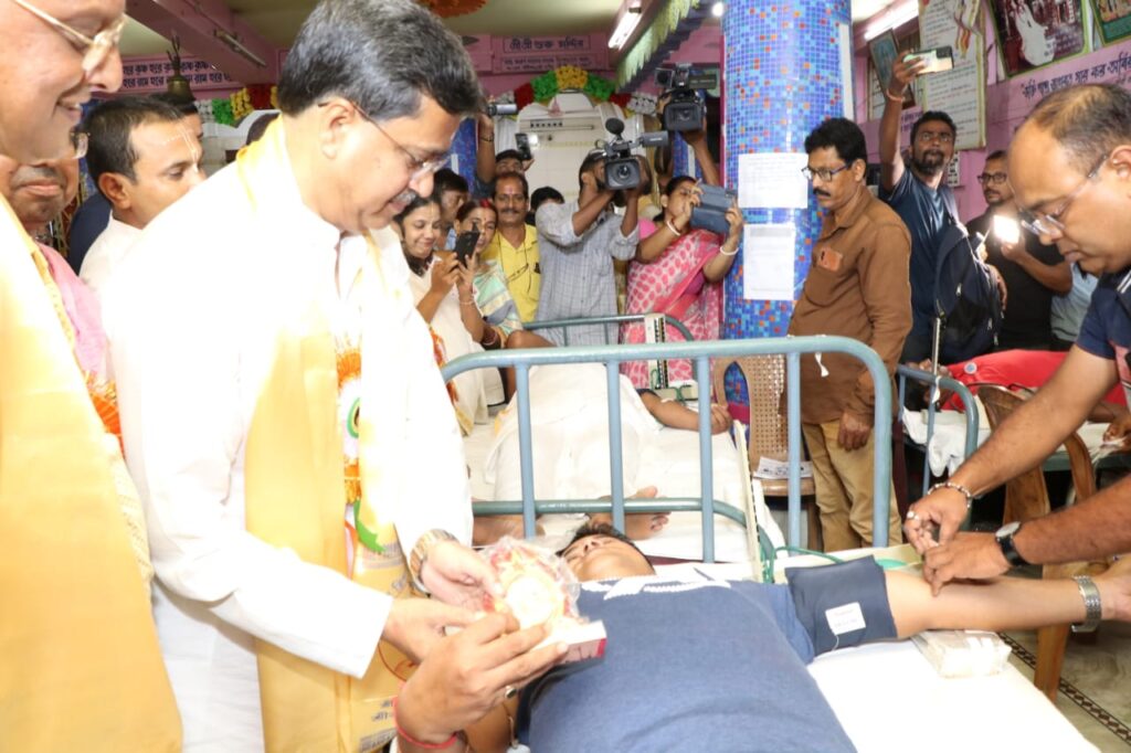 Shree Shree Mahanam Angan organized voluntary blood donation camp at Mahanambrata Sarani, Banamalipur, Agartala on Wednesday (14th September, 2022). Hon’ble Chief Minister Dr. Manik Saha has inaugurated voluntary blood donation programme. Hon’ble Mayor of Agartala Municipal Corporation (AMC) Dipak Majumder and other dignitaries were present at the voluntary blood donation programme.