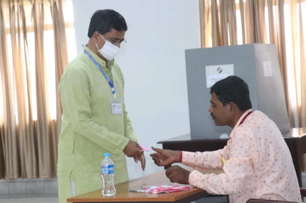 Hon’ble Chief Minister Dr. Manik Saha casts his vote for the presidential election at the lobby of the Legislative Assembly, Agartala on Monday (18th July, 2022).