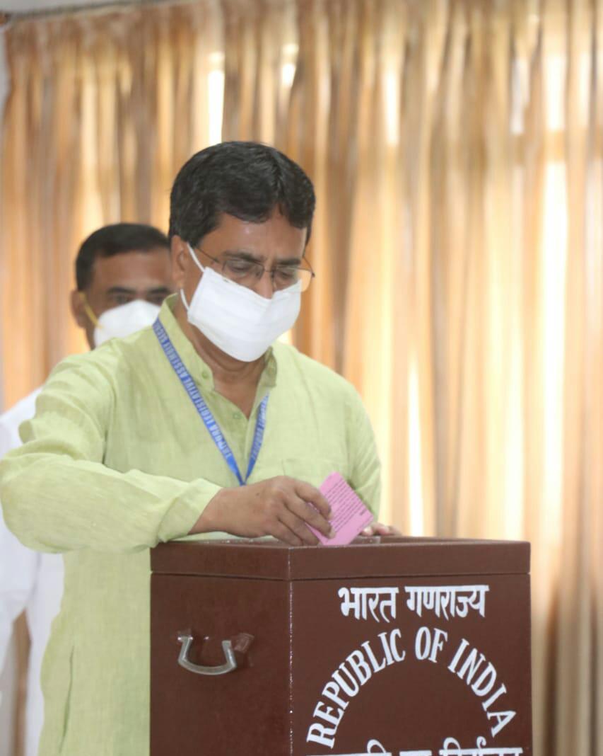 Hon’ble Chief Minister Dr. Manik Saha casts his vote for the presidential election at the lobby of the Legislative Assembly, Agartala on Monday (18th July, 2022).