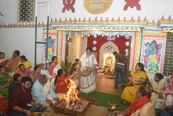 Hon’ble Chief Minister of West Bengal Mamata Banerjee performed Kali Puja at her residence in Kolkata on 24th October, 2022).