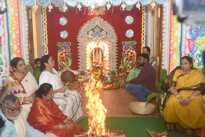 Hon’ble Chief Minister of West Bengal Mamata Banerjee performed Kali Puja at her residence in Kolkata on 24th October, 2022).