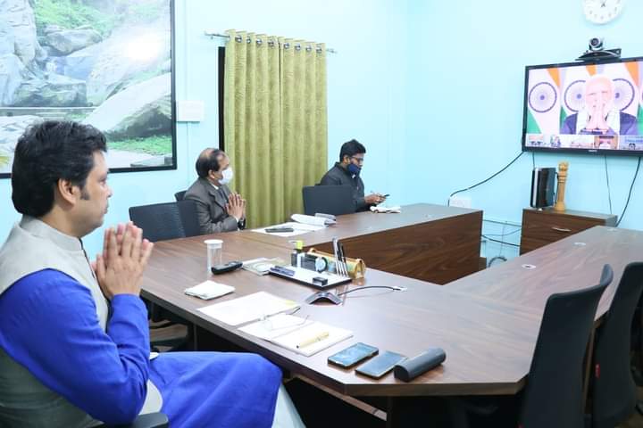 Hon’ble Chief Minister Biplab Kumar Deb on Saturday (22nd January, 2022) attended virtual meeting with District Magistrates from across the country chaired By Hon’ble Prime Minister Narendra Modi. Hon’ble PM Narendra Modi was interacted with District Magistrates from across the country on the implementation of key Government Schemes.