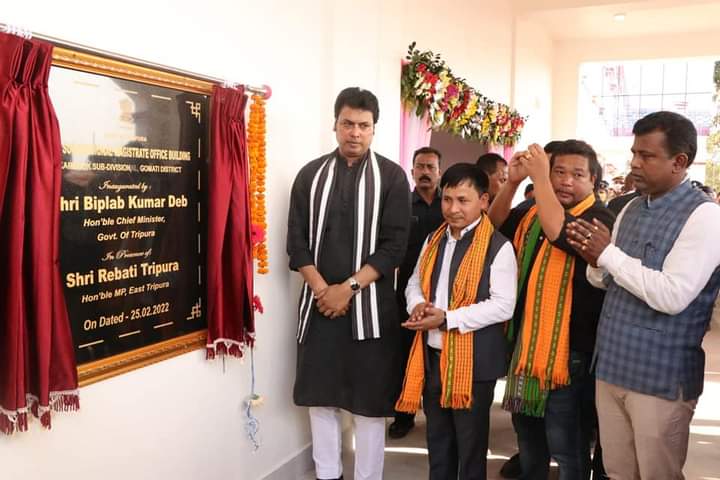 Hon’ble Chief Minister Biplab Kumar Deb has inaugurated the Newly Constructed SDM Office Building at Karbook on Friday (25th February, 2022). Hon’ble MP Rebati Tripura and other officials, dignitaries were present at the inauguration ceremony.