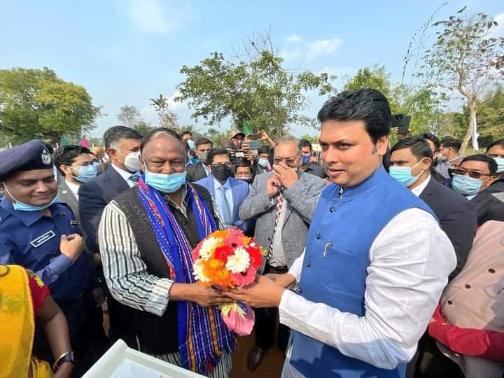 Hon’ble Commerce Minister of Bangladesh Tipu Munshi Ji, Hon Industry and Commerce Minister of #Tripura Manoj Kanti Deb Ji, Indian High Commissioner to Bangladesh, Vikram Doraiswami Ji, and Hon MP of Bangladesh Md. Abdus Shahid Ji attended the ceremony”, Hon’ble CM of Tripura Biplab Kumar Deb tweeted.