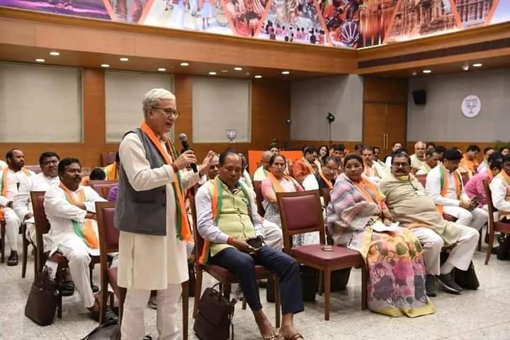 “Today, attended the Samajik Sambad of leaders of the tribe society, and social workers from all over the country at the party headquarters in New Delhi. The National BJP President Sri J.P. Naddaji and the National General Secretary (org) Sri B.L. Santoshji interacted and discussed issues related to the tribal society. The meeting was well attended, informative and brought to light many issues”, Hon’ble Deputy Chief Minister Jishnu Dev Varma posted social media.