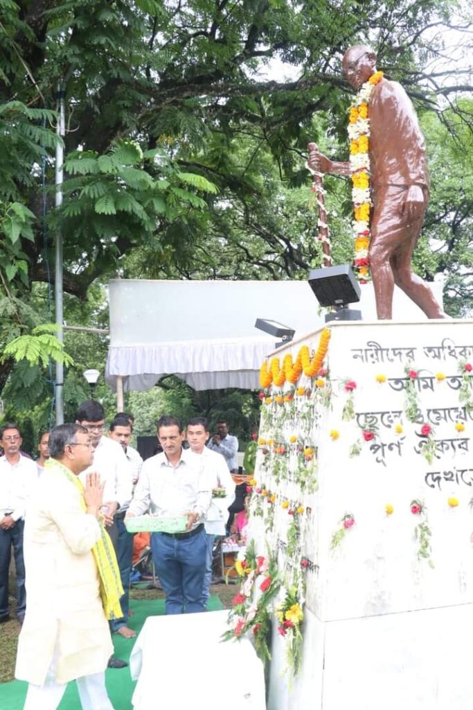 Hon’ble Education Minister Ratan Lal Nath paid floral tributes to Mahatma Gandhi on his birth anniversary at Circuit House, Agartala on Sunday (2nd October, 2022).
