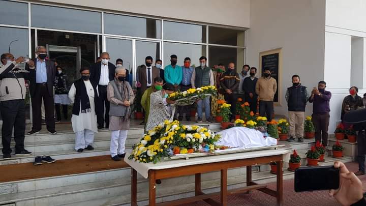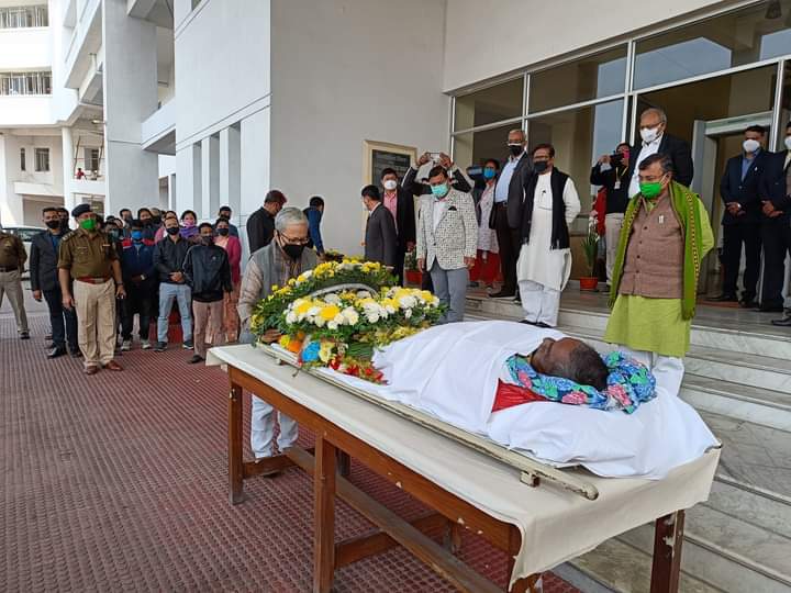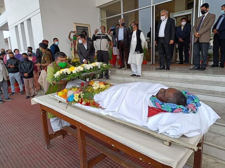 Hon’ble Education Minister Ratan Lal Nath paid last tributes to veteran CPI(M) leader and former Assembly Speaker Ramendra Chandra Debnath at Secretariat, Agartala on Wednesday (2nd February, 2022). Hon’ble Deputy Chief Minister Jishnu Dev Varma and Hon’ble Fire & Emergency Service and OBC, Minority Welfare Minister Ramprasad Paul and other ministers, CPI(M) party leaders also paid last tributes to veteran CPI(M) leader and former Assembly Speaker Ramendra Chandra Debnath.