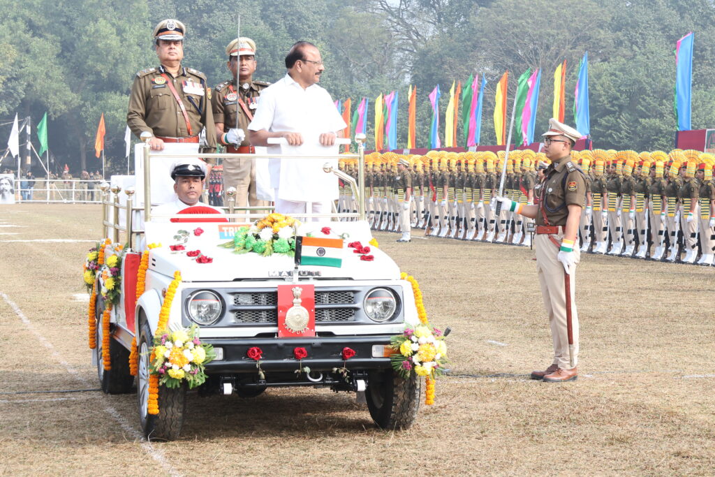 Agartala, 26th of January, 2024 : Hon’ble Governor of Tripura Indrasena Reddy Nallu inspects the guard of honour at 75th Republic Day celebration ceremony at Assam Rifles Ground, Agartala on Friday (26th January, 2024).