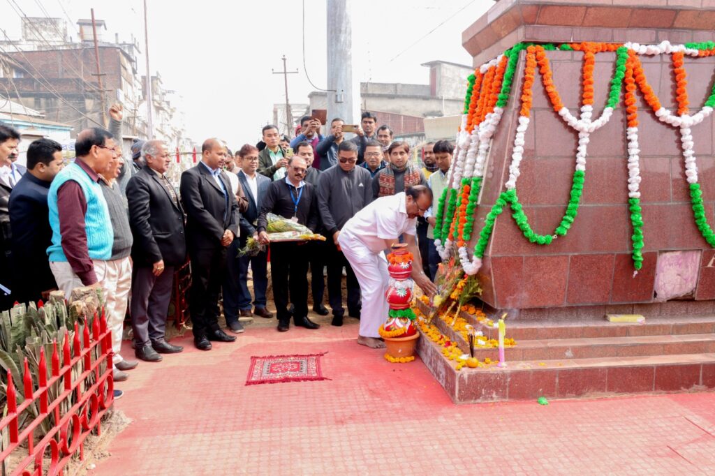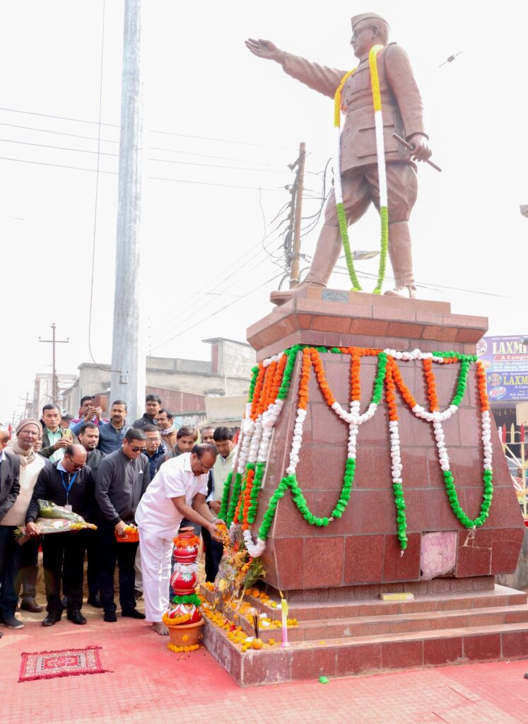 Agartala, 23rd of January 2024 : Hon’ble Governor of Tripura Indrasena Reddy Nallu paid floral tributes to freedom Fighter Netaji Subhas Chandra Bose on his Birth Anniversary at Maharaj Ganj Bazar (Golbazar) Agartala on Tuesday (23rd January 2024).