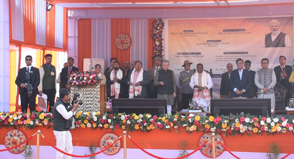 New Delhi/Guwahati, 3rd of January, 2025 : Lakshman Prasad Acharya, Hon’ble Governor of Assam, Shri Ashwini Vaishnaw, Union Minister of Railways, Information & Broadcasting and Electronics & Information Technology along with Dr. Himanta Biswa Sarma, Chief Minister of Assam, today jointly inaugurated the National Institute of Electronics & Information Technology (NIELIT) Deemed to be University at 12 locations including 5 locations in North Eastern States. NIELIT Deemed to be University, the only university under the Ministry of Electronics & Information Technology (MeitY), was dedicated to the nation during an event held in Guwahati.